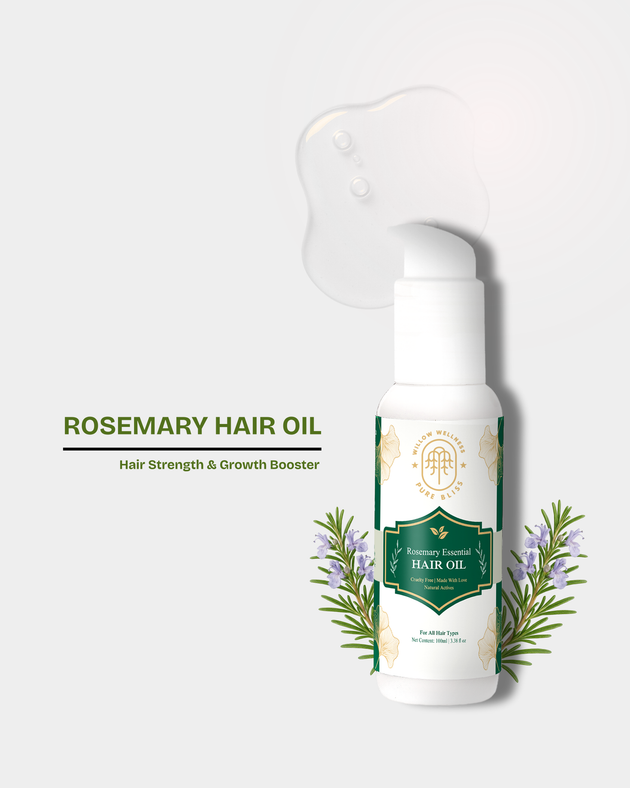 Rosemary Essential Hair Oil with Sunflower seed oil– Promotes Hair Growth, Shine & Strength | 100% Pure & Natural, Paraben, Sulphate & Mineral oil free. Product Description: Transform your hair care routine with Willow Wellness Rosemary Essential Hair...Sale price Rs. 599.00Regular price Rs. 1,298.00 -