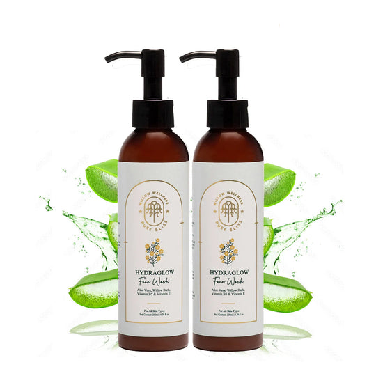 Hydraglow Aloe Vera Skin Cleanser & Face Wash Combo | With Vitamins B5 & E, Hyaluronic Acid & Willow Bark (Pack of 2)