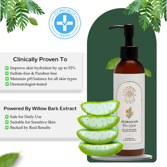 Hyaluron Hydraglow Aloe Vera Skin Cleanser & Face Wash With Vitamins B5 & E, Willow Bark for Hydration & Pore-Cleansing Formula for All Skin Types Product Description Transform your skincare routine with the Willow Wellness Hydraglow Aloe...Sale price Rs. 749.00Regular price Rs. 2,247.00 -