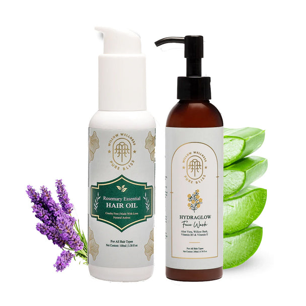 Willow Rosemary Essential Hair Oil + Hydraglow Face Wash Combo