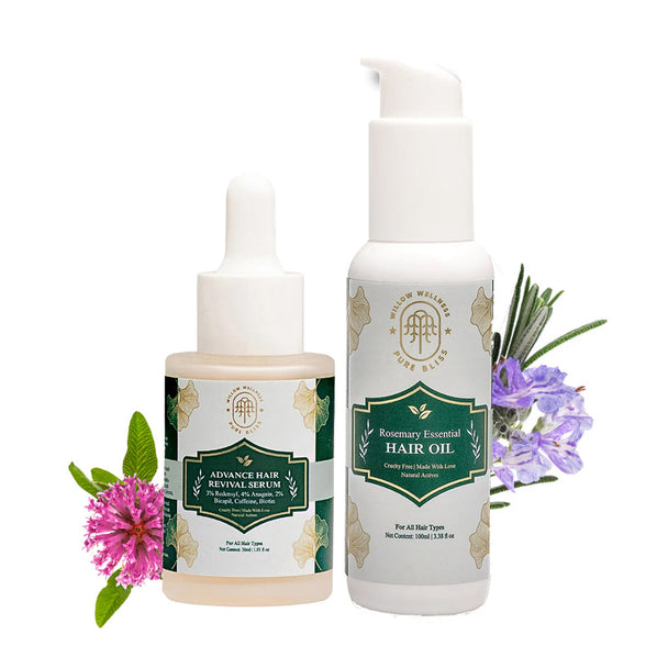 Willow Wellness Hair Revival Combo | Hair Growth Serum + Rosemary Oil + Neem Wooden Comb | Anti Hair Fall & Scalp Care Kit